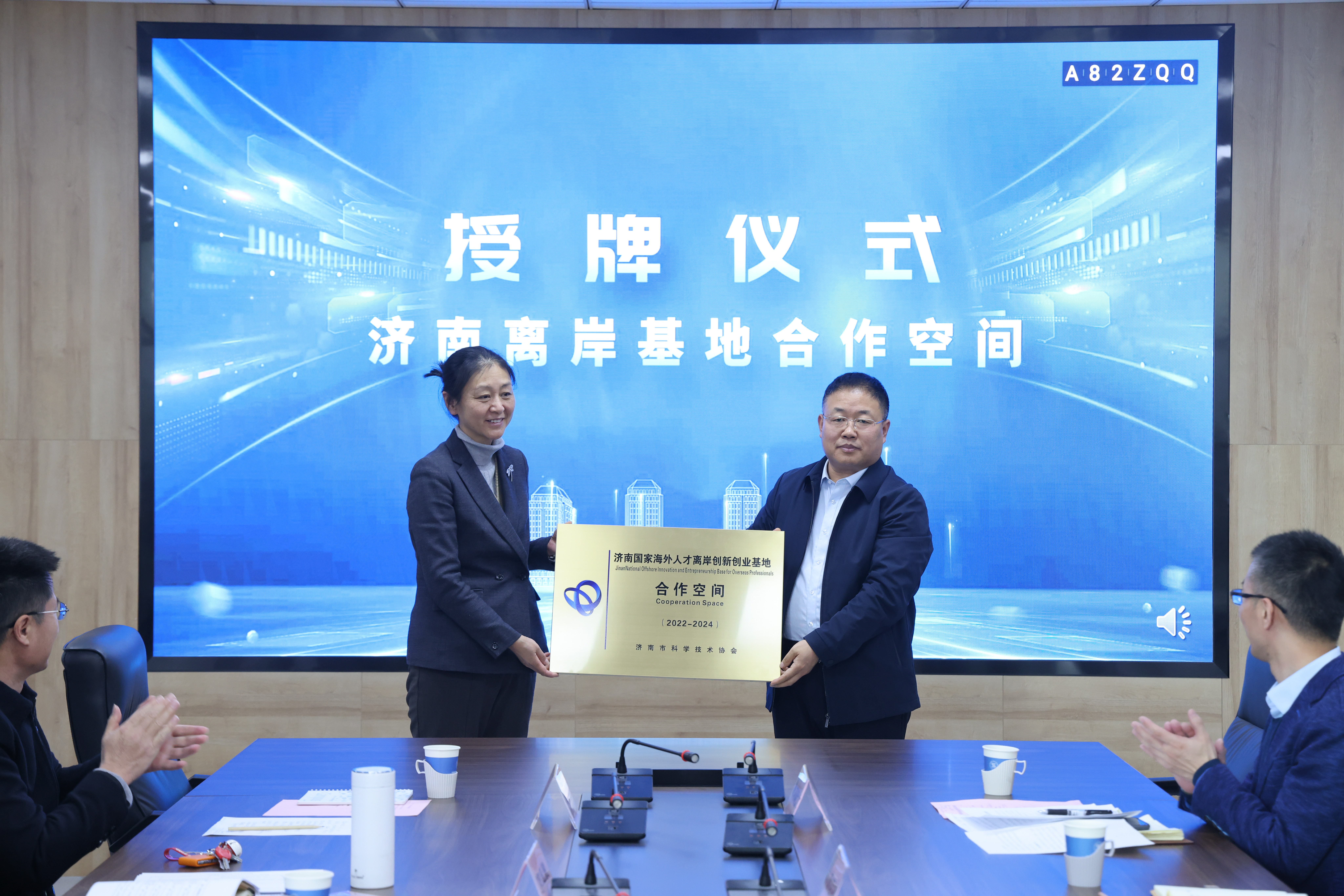 会议还举行了授牌仪式,胡辉向我院颁授了“济南离岸基地合作空间”牌匾。